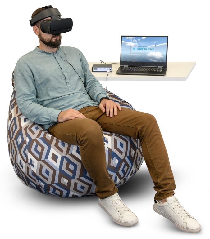 Maintaining the required breathing frequency allows you to control animation in virtual reality: control the weather, natural phenomena, fire in the fireplace (depending on the selected scenario)