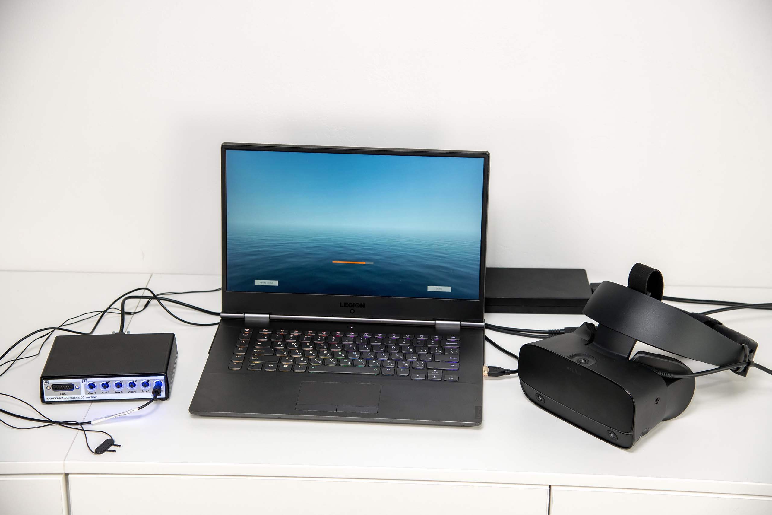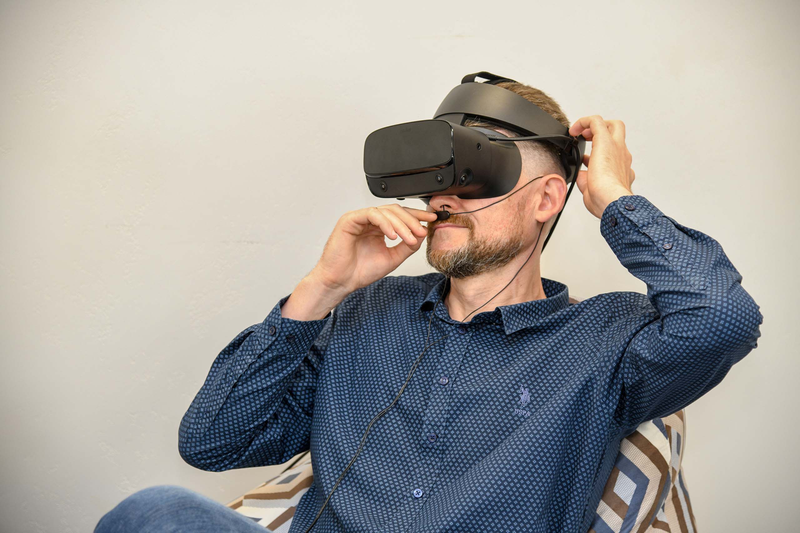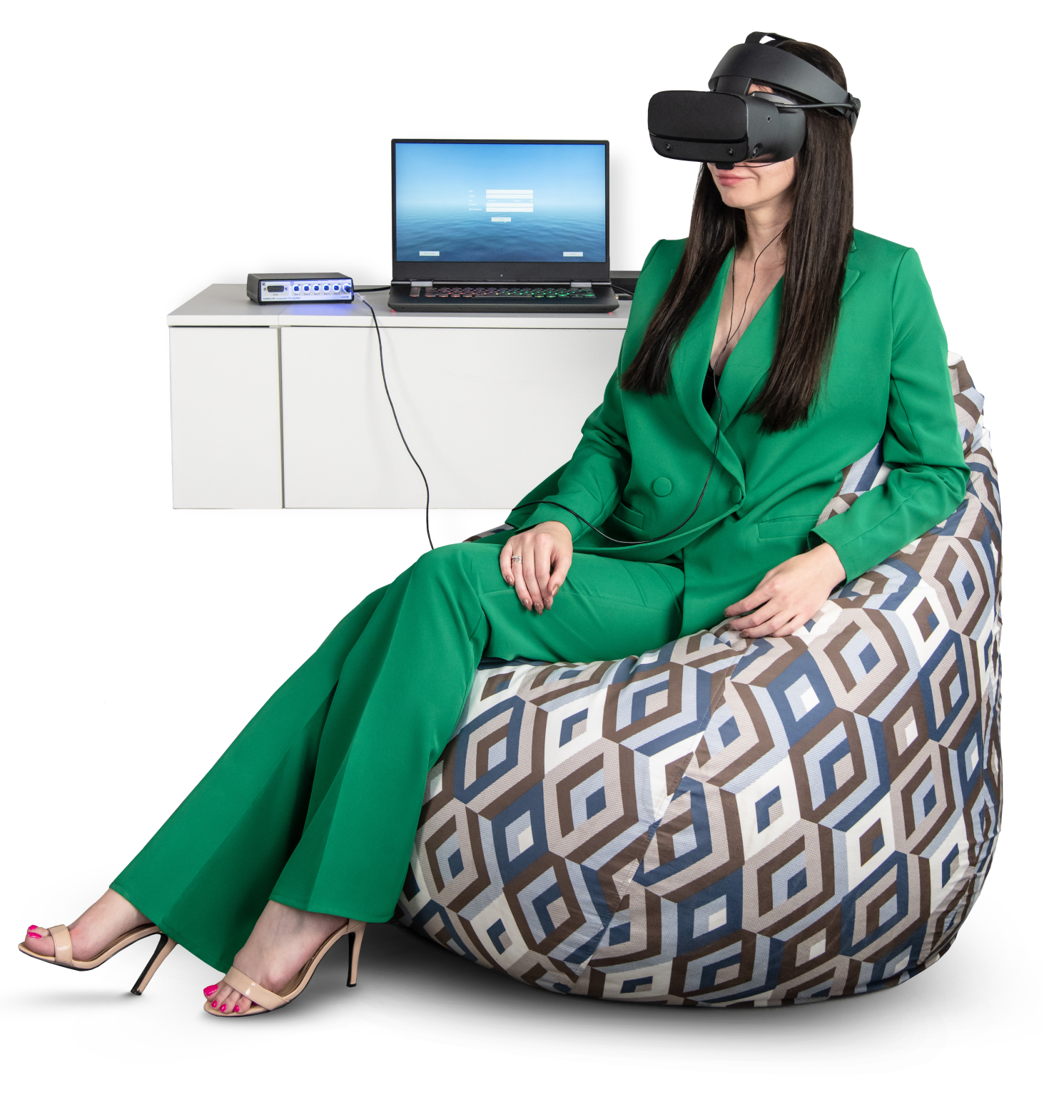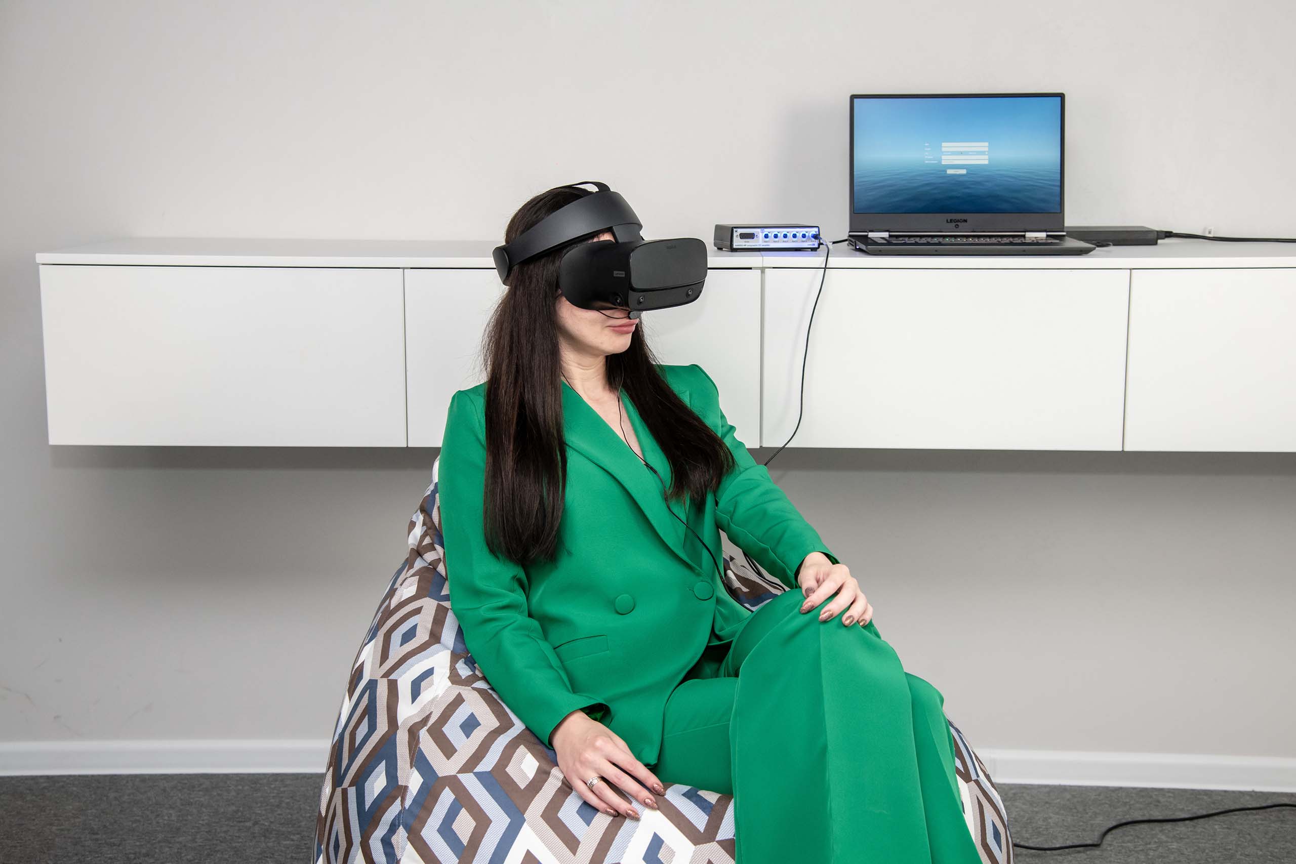 The patient is immersed in virtual reality, where his attention is concentrated on the VR scene